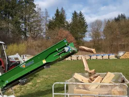 Wir sägen und spalten Ihr Holz in einem Arbeitsgang bei Ihnen vor Ort, egal ob bei Ihnen zu Hause oder direkt im Wald.